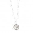 Collana in bronzo color argento con ciondolo a cerchio albero della vita con cuori circondato da zirconi