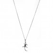 Collana in argento rodiato 925 con ciondolo a forma di geco con zirconi neri