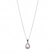 Collana con ciondolo in argento 925 rodiato a forma di goccia trasparente circondato da zirconi con sfere multicolor all'interno.