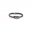 Bracciale con due fasce in pelle marrone con teschio al centro e chiusura in acciaio 316L