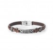 Bracciale in vero cuoio marrone e piastra centrale in acciaio 316 L con x in rilievo